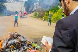 ביעור – שורפים את החמץ שמצאנו בבדיקה למחרת בבוקר