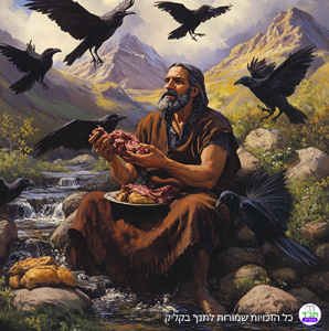 אליהו מסתתר בנחל כרית והעורבים מביאים לו אוכל בבוקר ובערב.