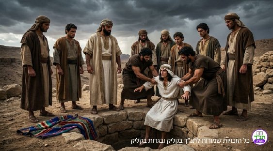 ראובן הולך לדרכו והאחים מפשיטים את יוסף מכותנתו וזורקים אותו לבור הריק ממים.